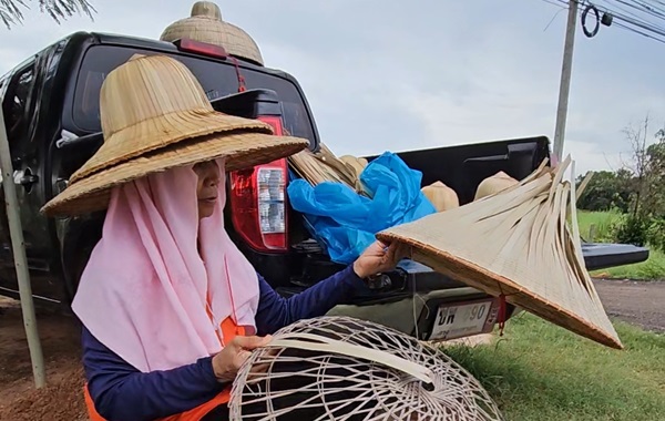 Fabrication de chapeaux thaïlandais en feuilles de palmier (Khon Kaen) 👤 Portrait de l’artisane Wannapa Wannapa vit a Ban Thum,