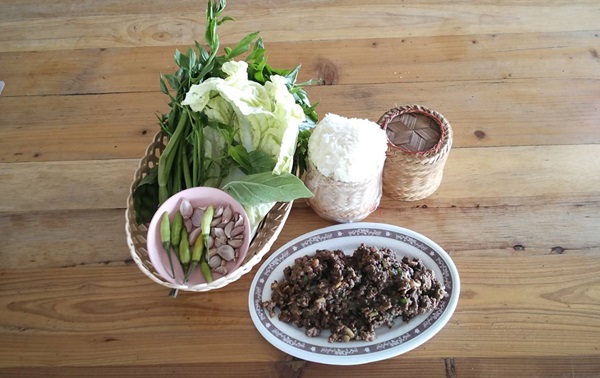 🥗 La salade de viande épicée de l’Isan Plat emblématique de la région de l’Isan, le Laab (parfois orthographié Larb)