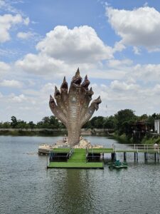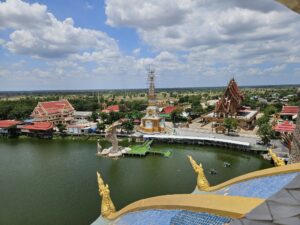 L’intérieur du bâtiment principal abrite de magnifiques peintures murales et statues, tandis que la terrasse circulaire offre une vue panoramique sur la campagne environnante. Wat Ban Rai n’est pas seulement un temple, mais une véritable œuvre d’art et un témoignage de la foi thaïlandaise contemporaine.