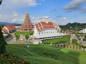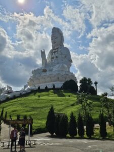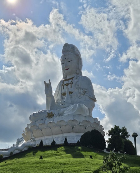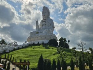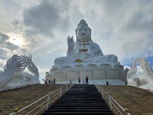 Wat Huay Pla Kang (วัดห้วยปลากั้ง), situé à proximité de Chiang Rai, est un temple emblématique qui allie spiritualité bouddhiste et symbolisme unique. Connu pour son immense statue de Guan Yin, la déesse de la Miséricorde, ce temple se distingue par son architecture majestueuse et son atmosphère paisible, attirant des visiteurs de toute la Thaïlande et du monde entier.