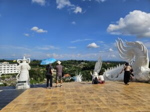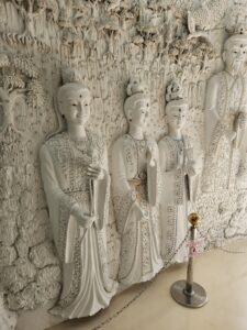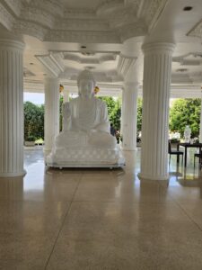 Le temple principal, de style pagode à neuf étages, reflète une combinaison d’architectures thaïlandaise et chinoise. À l’intérieur, des sculptures délicates et des images sacrées racontent des histoires spirituelles, inspirant à la fois respect et contemplation. Le complexe est entouré de jardins soigneusement entretenus et de statues impressionnantes qui ajoutent à la beauté et à l’harmonie du lieu.