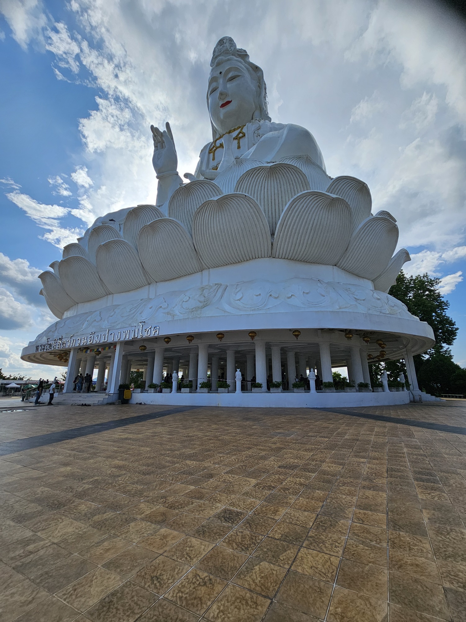 Wat Huay Pla Kang (วัดห้วยปลากั้ง), situé à proximité de Chiang Rai, est un temple emblématique qui allie spiritualité bouddhiste et symbolisme unique. Connu pour son immense statue de Guan Yin, la déesse de la Miséricorde, ce temple se distingue par son architecture majestueuse et son atmosphère paisible, attirant des visiteurs de toute la Thaïlande et du monde entier.