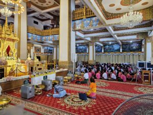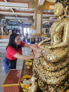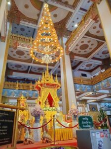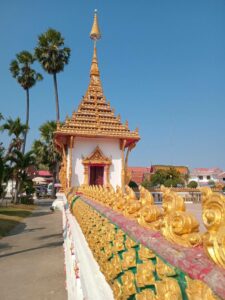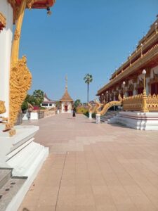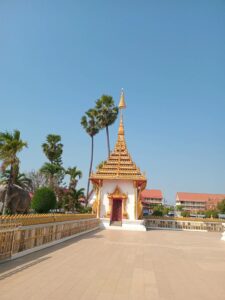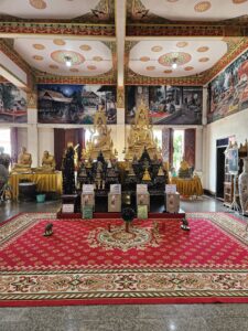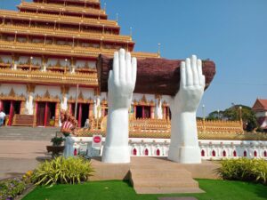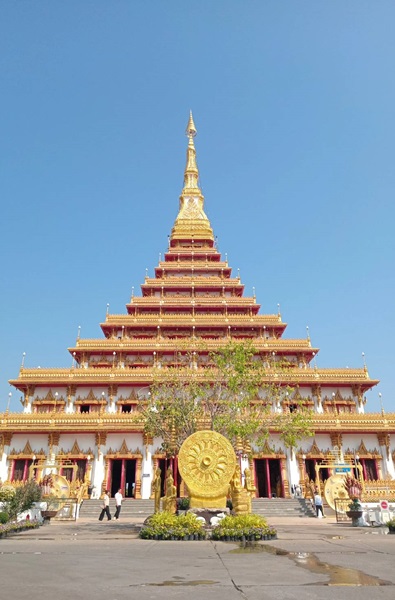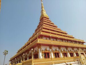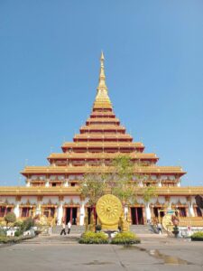 Le temple est également un centre spirituel majeur pour la communauté locale, attirant de nombreux fidèles venus prier ou faire des offrandes. Ses détails architecturaux, mêlant or et rouge éclatants, reflètent à la fois l’esthétique traditionnelle de l’Isan et le caractère sacré du lieu.
