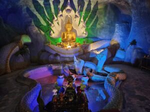 Entouré de jardins bien entretenus et d’arbres majestueux, Wat Sawan Niwet offre un cadre propice à la méditation et à la contemplation. Le son apaisant des cloches et les chants des moines créent une atmosphère invitant à la paix intérieure. Ce temple joue également un rôle actif dans la communauté, organisant des cérémonies religieuses et des événements spirituels tout au long de l’année.