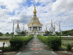 Entouré d’un plan d’eau et d’un jardin soigneusement aménagé, Wat Thung Setthi dégage une atmosphère sereine, invitant autant à la méditation qu’à la contemplation esthétique. Ce temple relativement récent est rapidement devenu une attraction majeure de Khon Kaen, apprécié des fidèles comme des voyageurs en quête de découvertes culturelles.